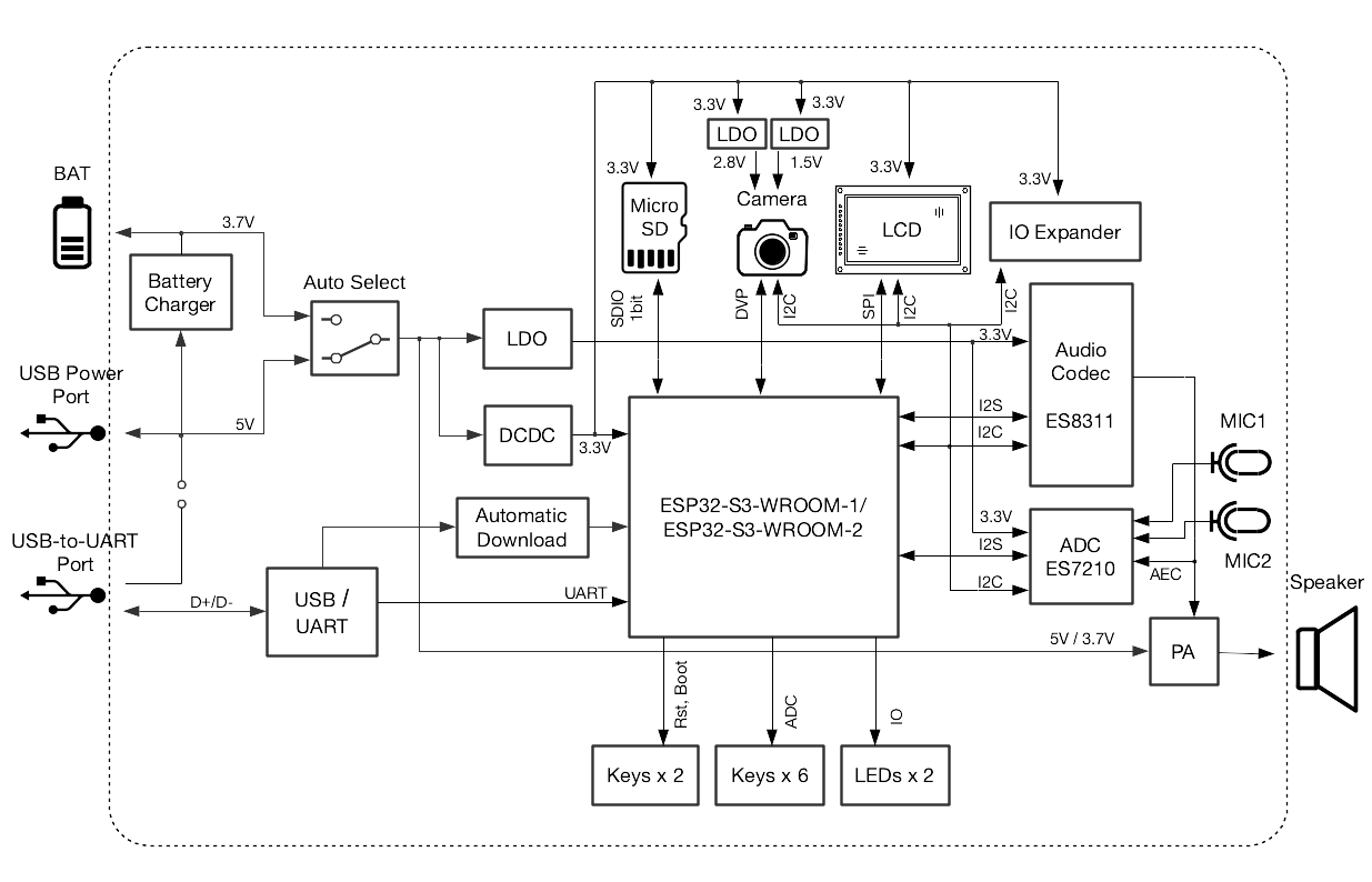 ESP32-S3-Korvo-2 V3.0 Electrical Block Diagram